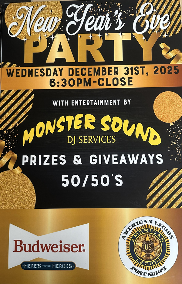 - Sunday, January 11 - Post 104 All Boards meeting 3pm